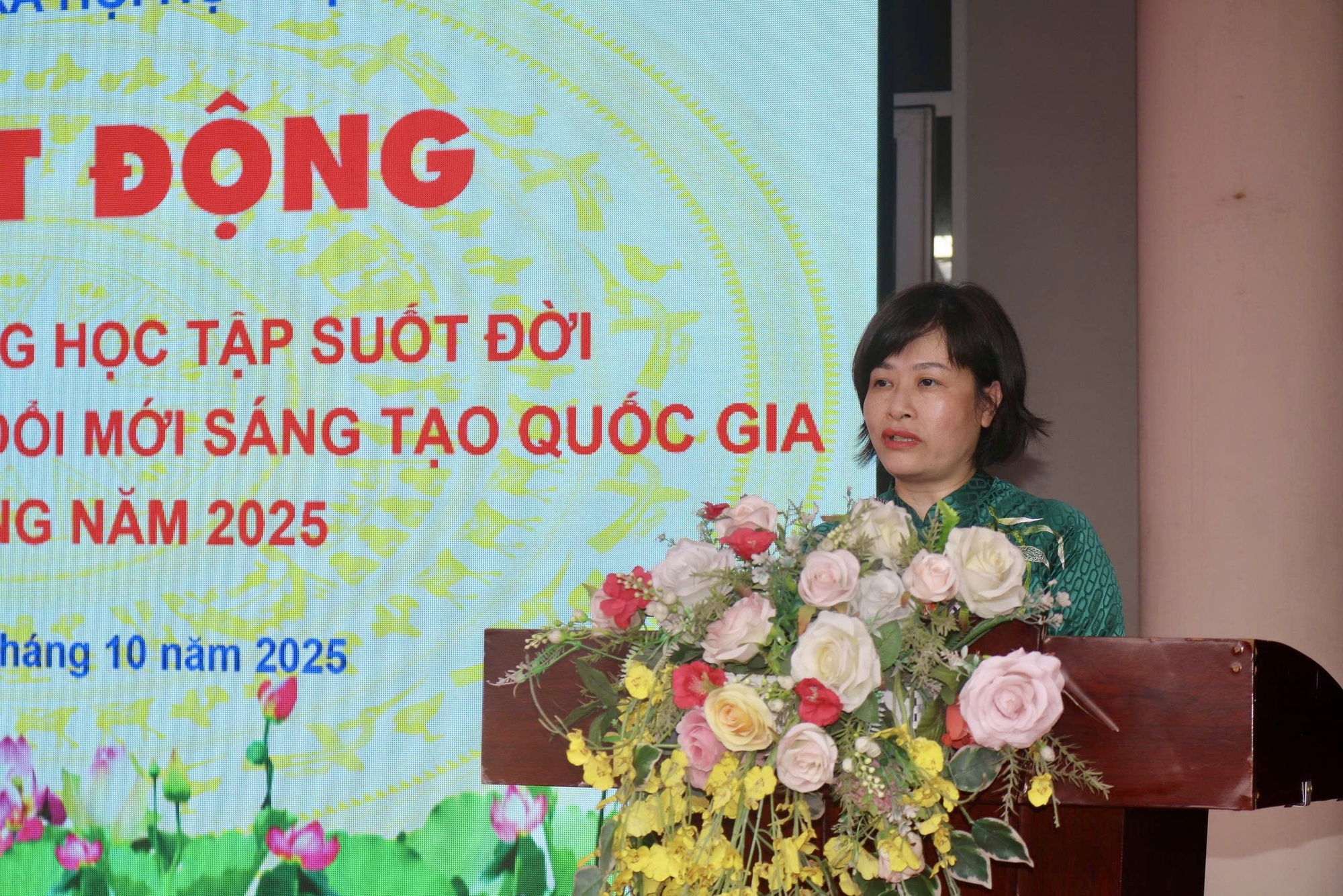 Phát biểu khai mạc, đồng chí Hoàng Thị Thúy Hằng - Bí thư Đảng ủy, Chủ tịch HĐND phường nhấn mạnh: “Học tập suốt đời không chỉ là nhu cầu tự thân của mỗi người mà còn là động lực để xây dựng xã hội phát triển bền vững. Phát động Tuần lễ hưởng ứng học tập suốt đời và đổi mới sáng tạo quốc gia năm 2025, chúng ta mong muốn tạo nên phong trào thi đua học tập lan tỏa, khích lệ tinh thần tự học, học thường xuyên trong mọi tầng lớp Nhân dân.”